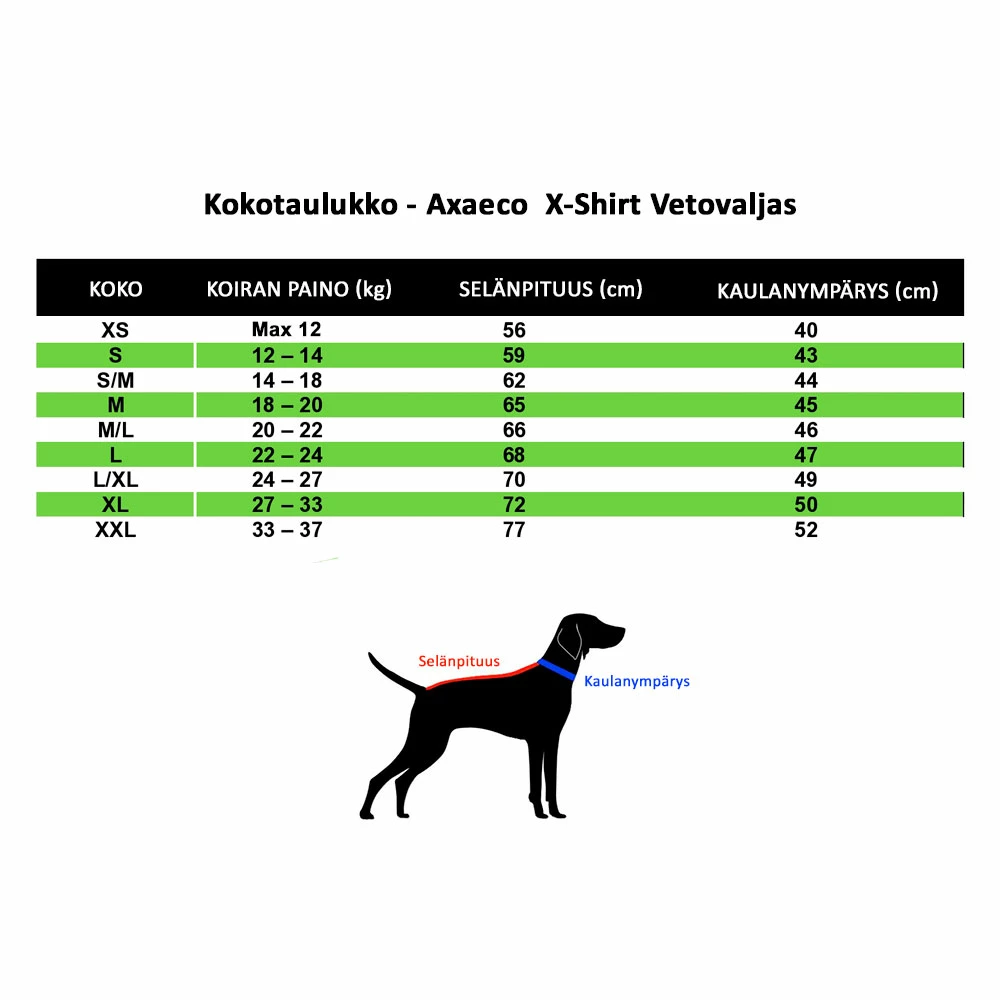 Käyttö: Valjakkoajo, skijoring, bikejoring, canicross – lajit, joissa vetopiste on koiran selkälinjan tasolla tai sitä ylempänä