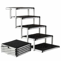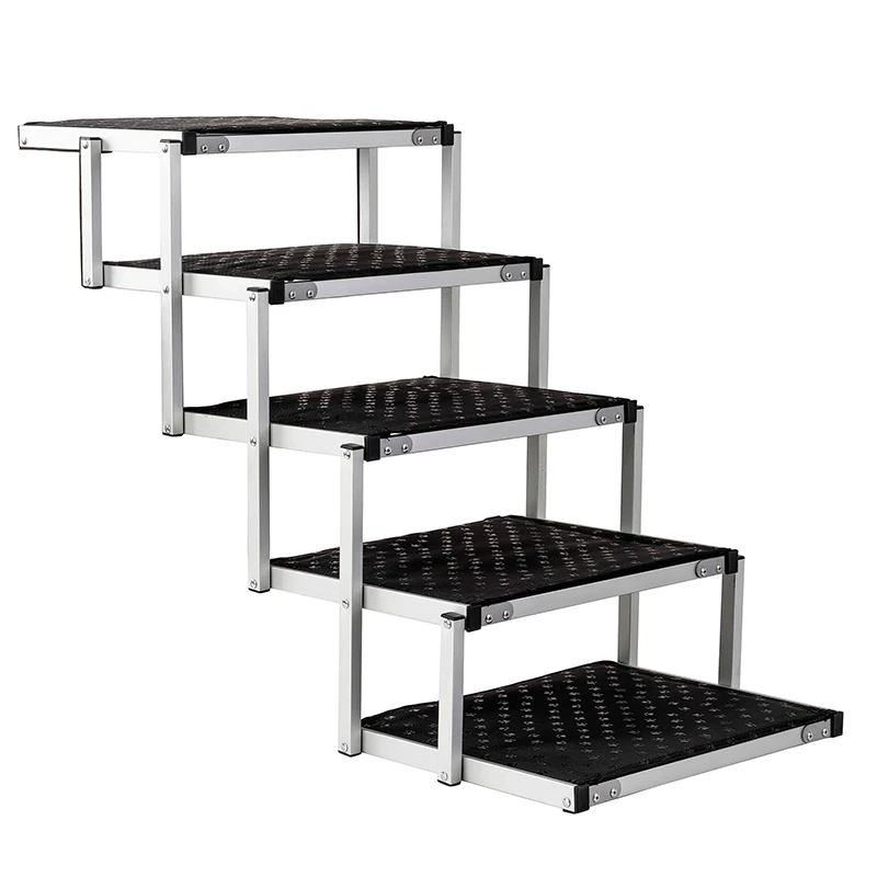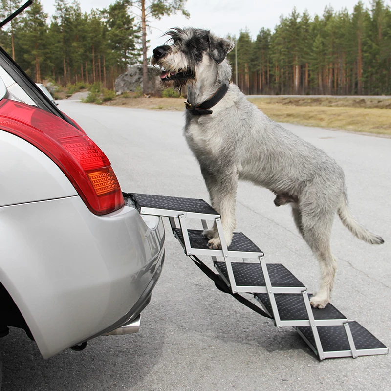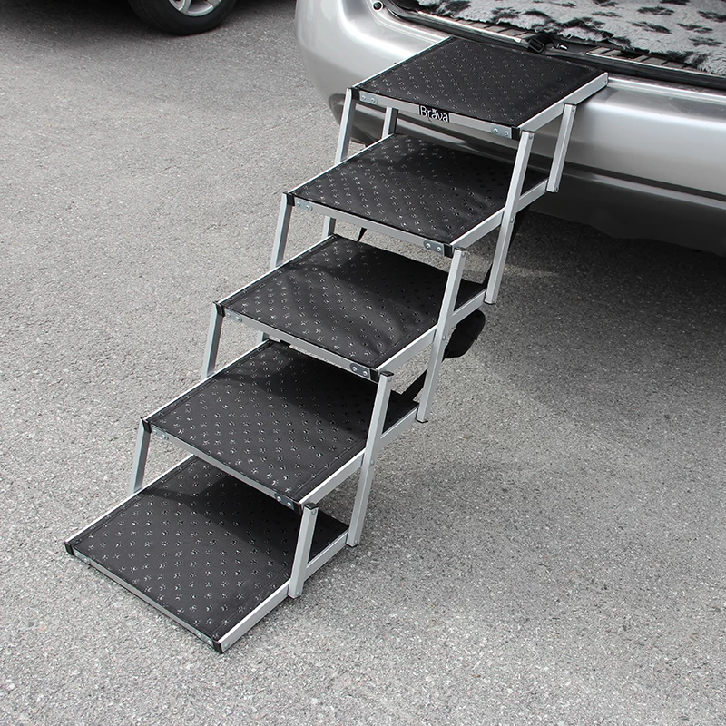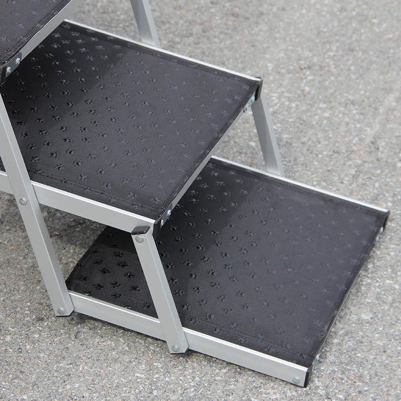 Helposti siirreltävät, avattavat portaat, joita pitkin lemmikin on helppo kiivetä esim. autoon tai muille korkeille paikoille. Portaissa on kestävä, mutta kevyt alumiinirunko. Porrastasanteet ovat vaneria, jotka on päällystetty vaahtomuovilla ja muovitetulla, vahvalla kaksinkertaisella oxford-kankaalla. Kankaan pinnassa on kuminen liukuestekuviointi. Rappusia pitkin lemmikki voi kiivetä niin autoon kuin vaikkapa trimmauspöydälle, sänkyyn ja muille korkeille paikoille kotona ja reissussa.