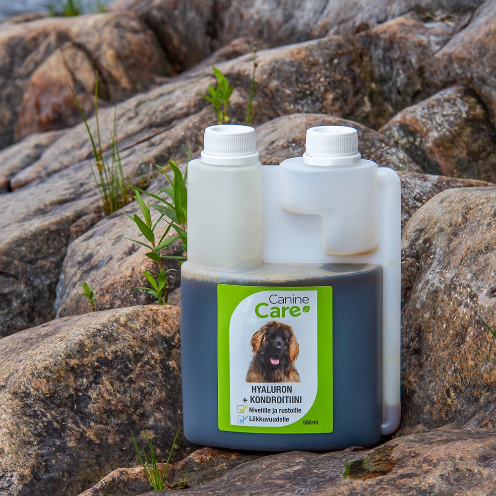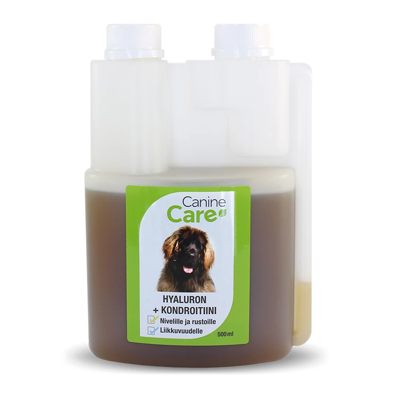 CanineCare Hyaluron + Kondroitiini -ravintolisä on täydennysrehu niveljäykkyydestä ja nivelvaivoista kärsiville koirille. Voitelee koiran niveliä ja parantaa liikkuvuutta. Suositellaan aktiivisille tai raskasta työtä tekeville, suurirotuisille ja ikääntyville koirille. Suositellaan myös aktiivisille tai raskasta työtä tekeville koirille.