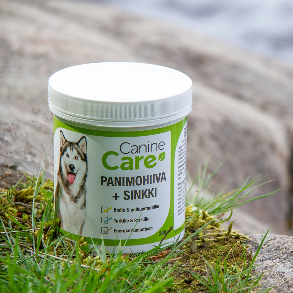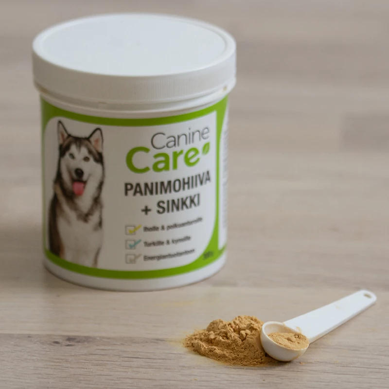 CanineCare Panimohiiva + sinkki -ravintolisä sisältää luonnollista ja maistuvaa panimohiivaa (Saccharomyces cerevisiae), joka on luonnollinen B-ryhmän vitamiinien ja hivenaineiden lähde. Säännöllisellä käytöllä on myönteisiä vaikutuksia koiran ihon ja turkin terveyteen sekä vastustuskykyyn. Panimohiivan B-vitamiinit, nukleotidit, aminohapot ja mikroelementit tukevat mm. koiran lisääntymisprosesseja ja hermostoa. B-vitamiineja tarvitaan moniin koiran kehon normaaleihin toimintoihin ja energiantuotannon ylläpitämiseen. Sen tarve lisääntyy fyysisessä rasituksessa ja stressissä. Sinkki tehokkaasti imeytyvänä sinkkikelaattina ylläpitää koiran turkin, ihon, polkuanturoiden ja kynsien hyvinvointia. Panimohiiva + sinkki on erinomainen lisä myös raakaruokaa nauttiville lemmikeille.