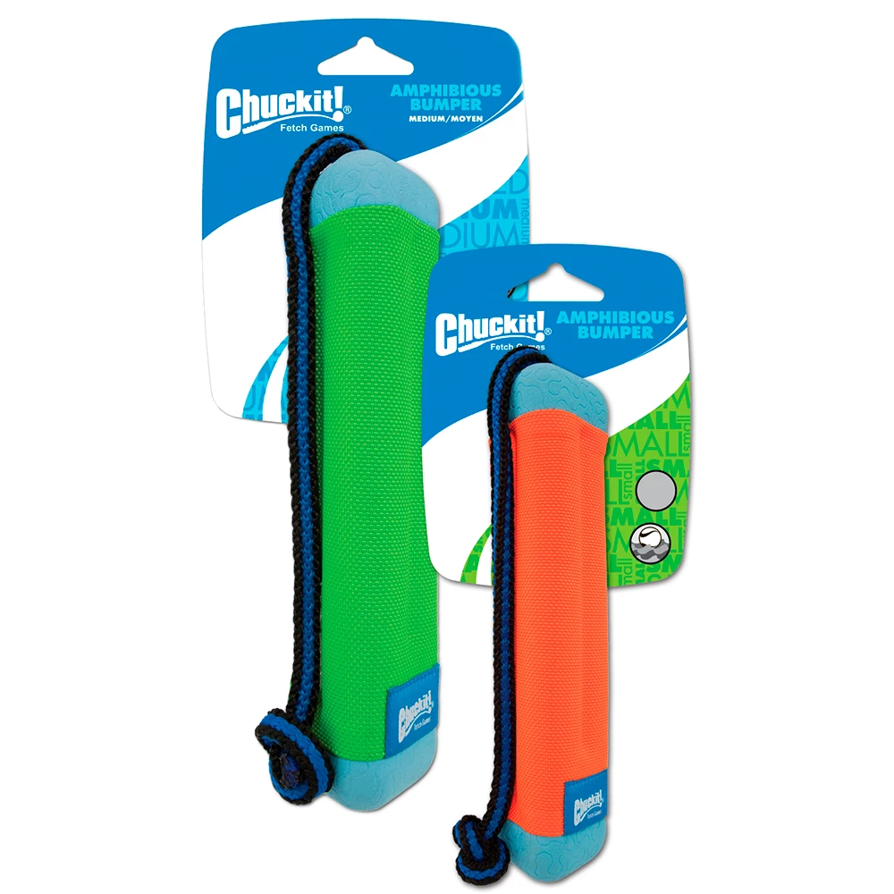 Napakasta kumista valmistettu koiranlelu kelluu vedessä ja pomppii maassa. Amfibinen lelu viihdyttää koiraasi maalla ja merellä! Lelu on juuri sopivan muotoinen koiran suuhun ja helppo poimia matkaan kovassakin vauhdissa. Solmupäinen köysi helpottaa kumilelun sinkoamista kohti horisonttia koiran noudettavaksi!