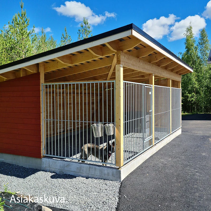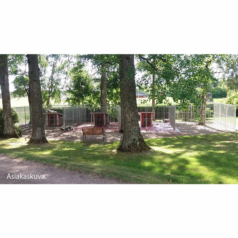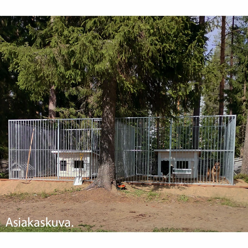 Rakenna elementeistä ja ovielementeistä haluamasi kokoinen koiratarha väliseinineen! Elementit voidaan kiinnittää toisiinsa kahdella eri tavalla: