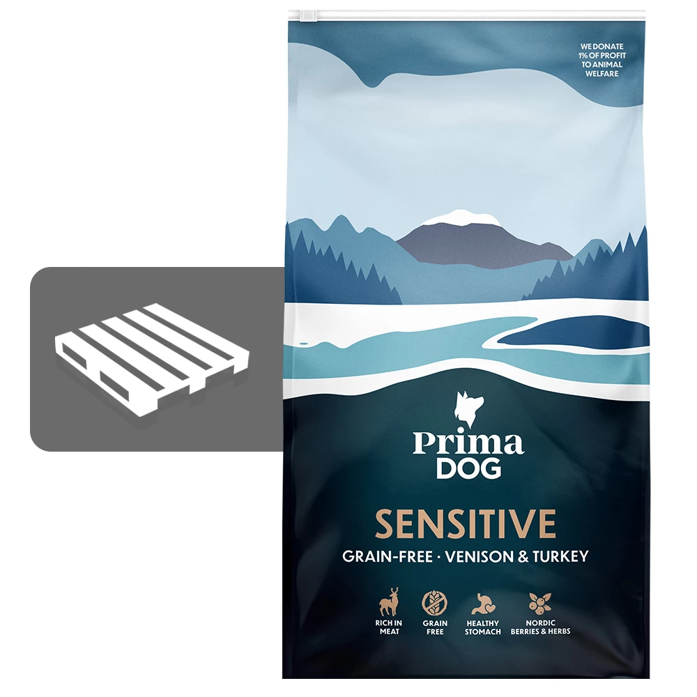 PrimaDog Adult Sensitive, viljaton Peura & Kalkkuna on erittäin korkealaatuinen täysravinto aikuisille koirille. Ruoka sopii erityisen hyvin herkkävatsaisille koirille ja keskikokoisen nappulakokonsa ansiosta sitä voi syödä niin pieni kuin suurikin koira.