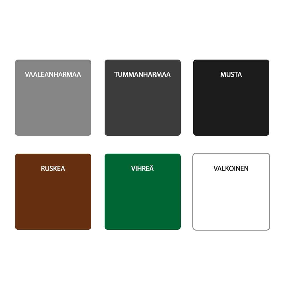 Matala, 1 m leveä elementti sähkösinkitystä, maalatusta teräksestä. Yhden elementin kanssa toimitetaan kaksi kiinnikettä, joilla se voidaan liittää toiseen elementtiin.