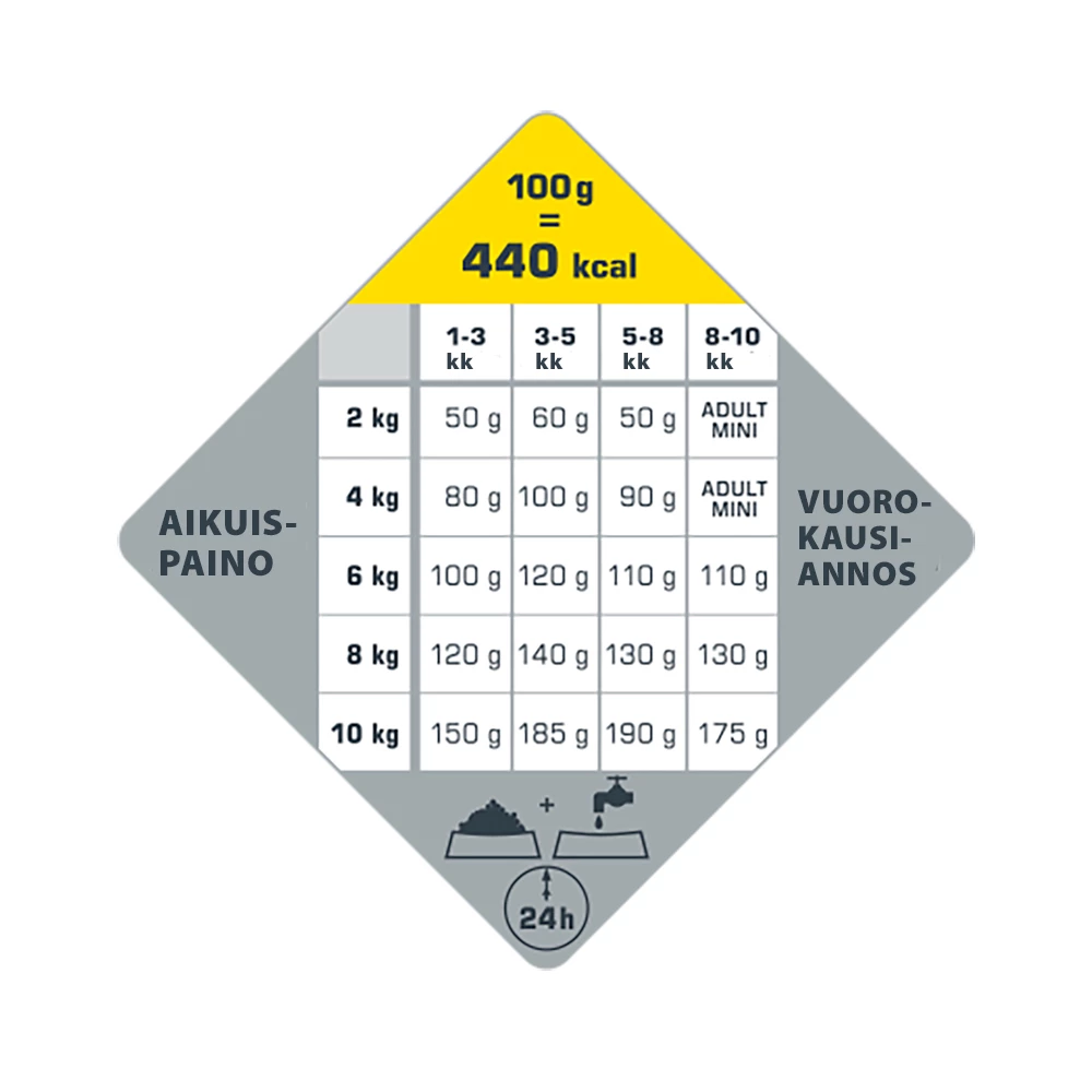 Opti Life Puppy Mini -koiranruoka (kana-riisi) on kehitetty erityisesti koiranpennuille, joiden odotettu aikuispaino on alle 10 kg.