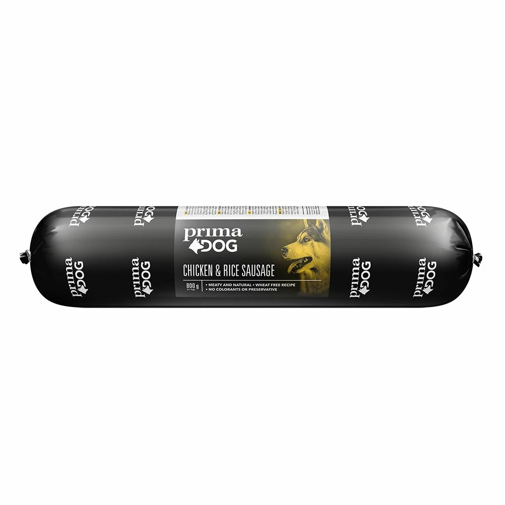 Maistuvan lihaisa PrimaDog Chicken & Rice Kana-riisi -makkara soveltuu tarjoiltavaksi koiralle pääasiallisena ravintona tai lisukkeeksi kuivaruuan oheen. Koostumukseltaan kiinteä makkara on helppo pilkkoa ja käyttää vaikka makupalana koulutuksessa.