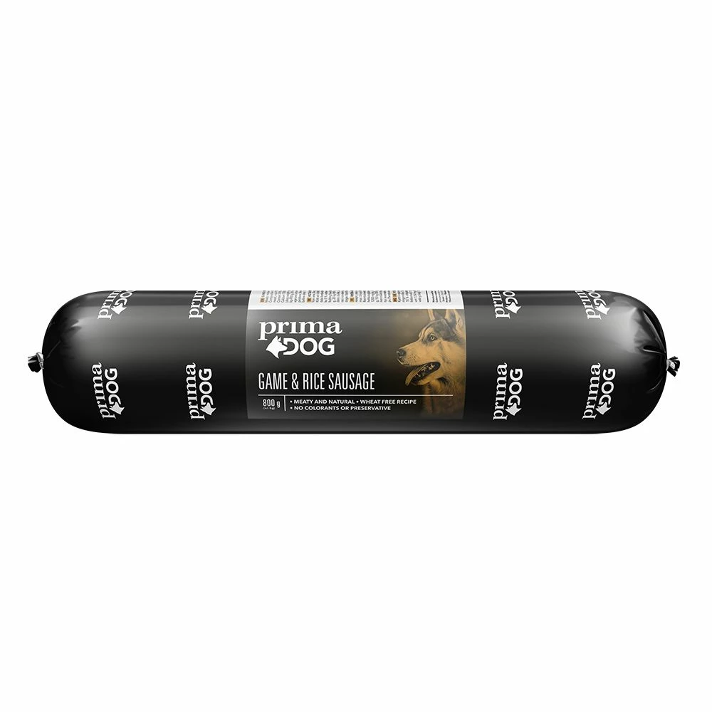 Maistuvan lihaisa PrimaDog Game & Rice Riista-riisi -makkara soveltuu tarjoiltavaksi koiralle pääasiallisena ravintona tai lisukkeeksi kuivaruuan oheen. Koostumukseltaan kiinteä makkara on helppo pilkkoa ja käyttää vaikka makupalana koulutuksessa.