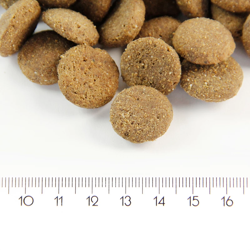 RAVINTOLISÄAINEET: A-vitamiini 19000 IE, D3-vitamiini 1800 IE, E-vitamiini 450 mg, sinkki 100 mg, kupari 18 mg, seleeni 0,18 mg, glukosamiinisulffaatti 260 mg, kondroitiinisulffaatti 160 mg, Omega 6: 2,65 g/kg, Omega 3: 0,47 g/kg.