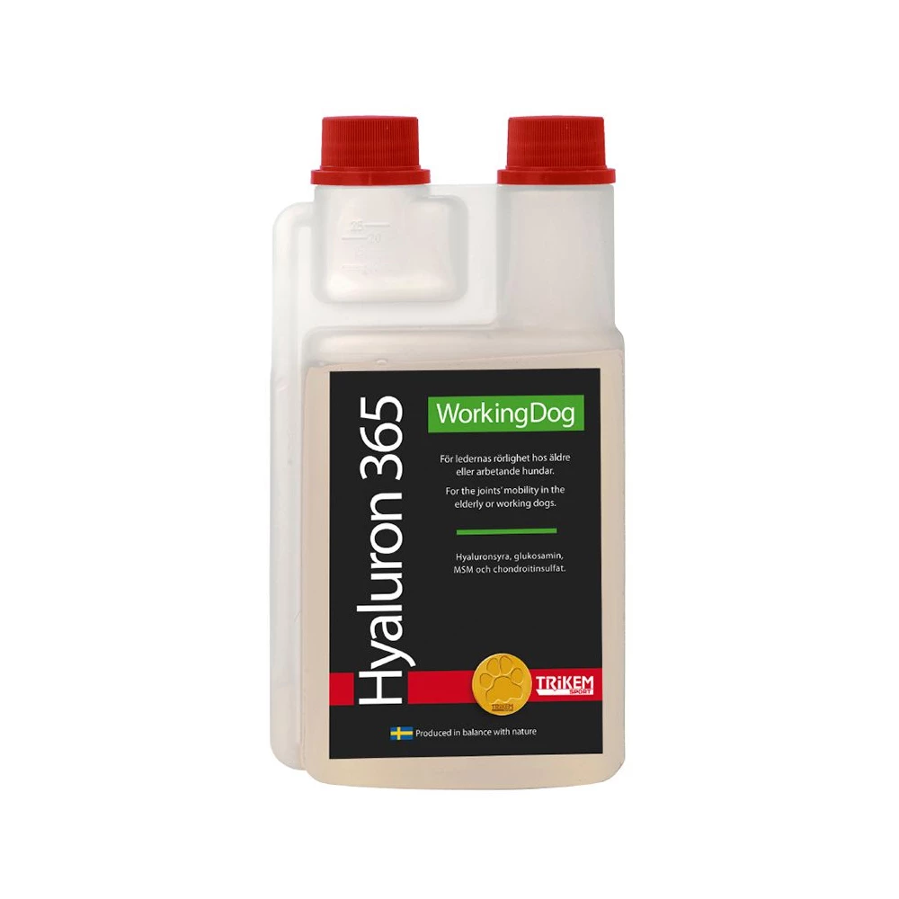 Tutkimukset ovat osoittaneet, että päivittäinen hyaluronihapon käyttö auttaa parantamaan jäykkyydestä ja niveloireista kärsivien koirien liikkuvuutta. Monet nivelaineet markkinoilla sisältävät vain korjaavia aineita, mutta kuluminen nivelissä jatkuu. Hyaluron365-valmiste sisältää korjaavien aineiden ohella myös niveliä voitelevaa hyaluronihappoa, jonka puute nivelsiteessä on kulumisen pohjimmainen syy. Hyaluronihappo vaikuttaa jo kahden tunnin kuluttua ensimmäisen käyttökerran jälkeen. Suorat tulokset ovat nähtävissä jo viikon kuluttua käytön aloittamisesta. Vaikutus on sama kuin saranaa rasvaisi.