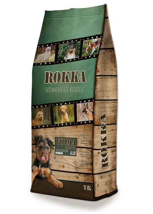 Voima Rokka on oiva valinta aktiivisen aikuisen koiran ruokintaan. Se sisältää hieman enemmän energiaa luonnostaan liikkuvaisemmille ja touhukkaammille tai kevyissä harrastus- tai työtehtävissä käytettäville koirille.